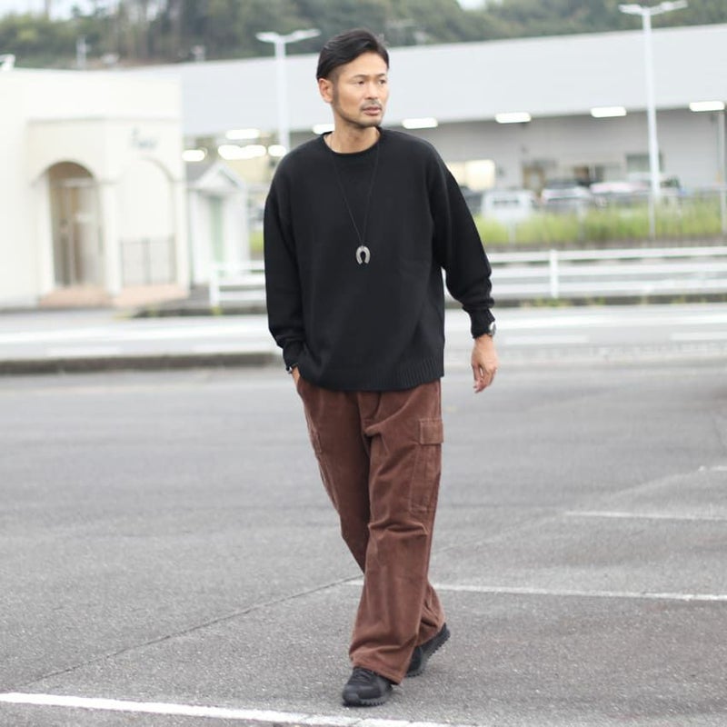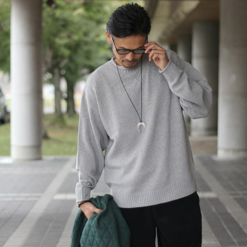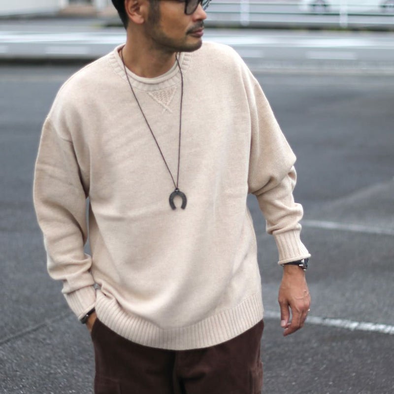 ニットですが、スウェットのようにラフに着られる楽さで、1枚でもインナーでも活躍するシンプルなデザインもまた魅力となっています。