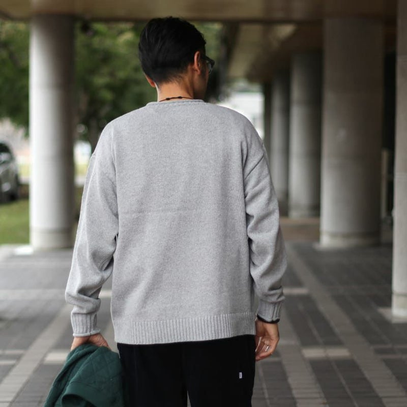 ネップなどVINTAGE感ある表情に加え、ロール始末やスウェット風のデザインに編み立てることで古着感がある1着に。