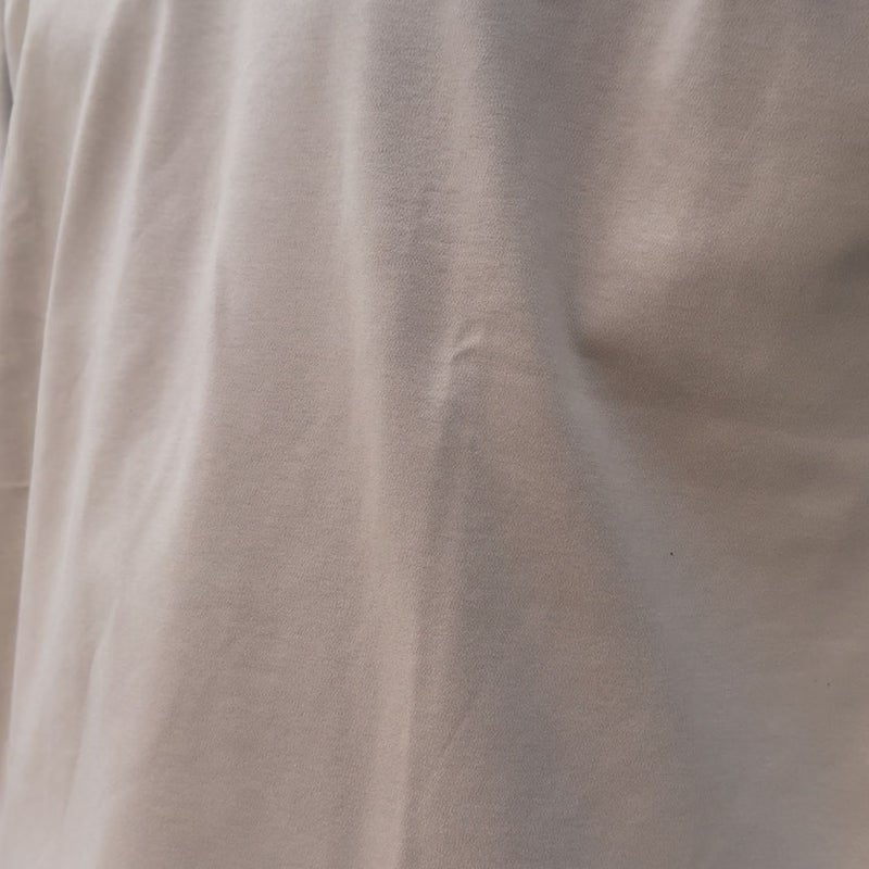 目が細かく弱光沢感があるしっとり滑らかな表情とサラサラの肌触り。滑らかで弾力性がある弱光沢の素材感でとても清潔感があります。軽い着心地と高いストレッチ性で、普通のTシャツとはくらべものにならない心地よさが特徴です。