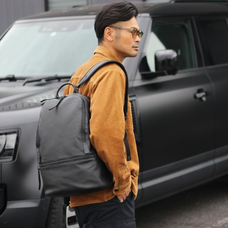 上質なレザーの質感と、無駄のないスマートなフォルムが魅力の大人のためのレザーデイパック。