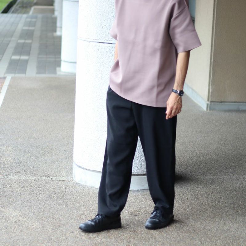 リネンライクな風合いの合繊素材を使用したワイドイージーパンツ。