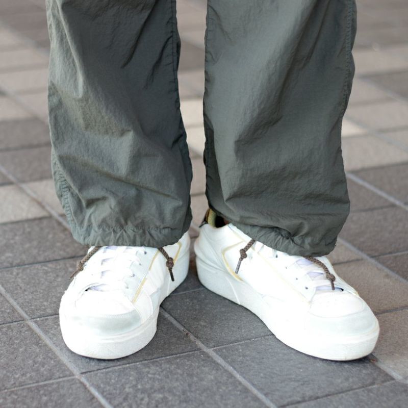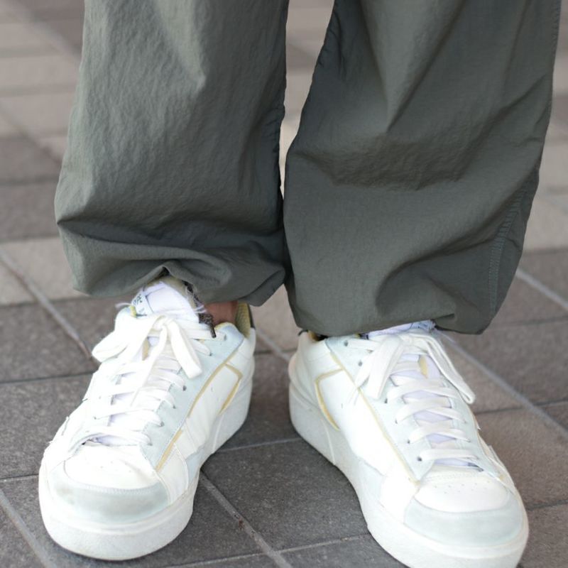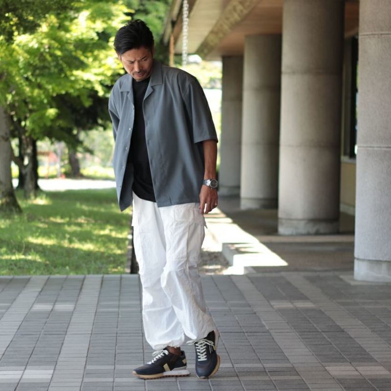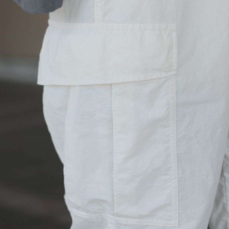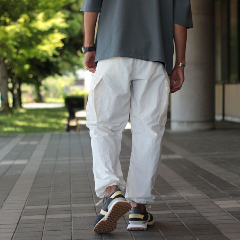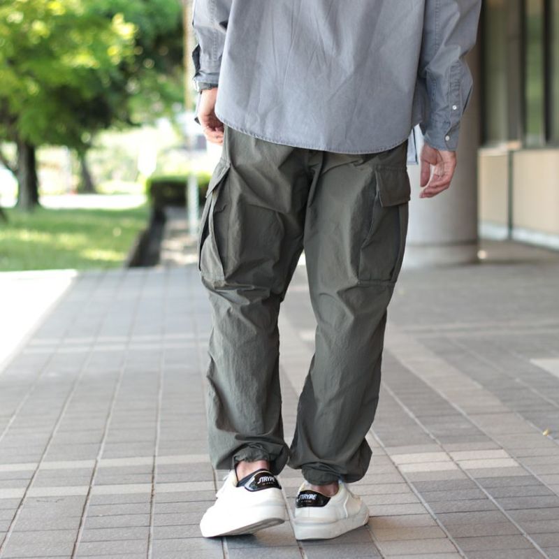 ナイロン素材に製品染めした超軽量イージーカーゴパンツ。