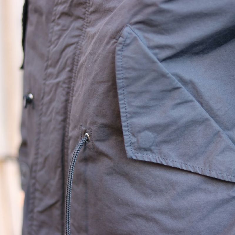 ウェザークロスを使用しているので軽量で着やすいモッズコートになっています。