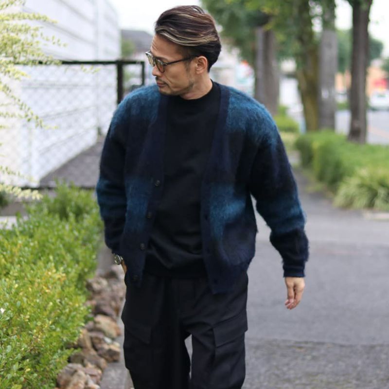 古着のモヘアニットをイメージしたジャガード編みカーディガン。