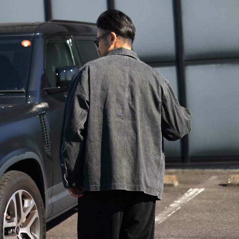 硫化染めのツイル素材を製品加工することで、着込んだような自然なアタリが生まれ、ラフすぎない大人のカジュアルスタイルを実現します。