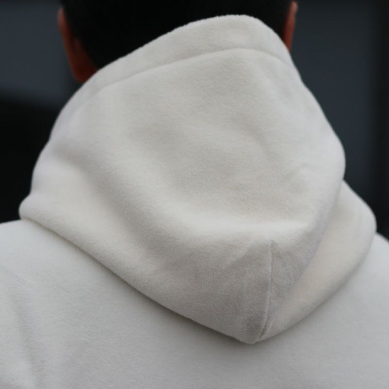 このフリースフーディは、単なる防寒具ではありません。軽さと保温性を兼ね備えた中肉厚のフリース素材を採用し、肌触りはソフトで滑らか。