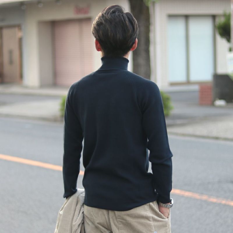 主張しないリブニットなので、コーデの邪魔をせず脱いで一枚で着てもサマになります。