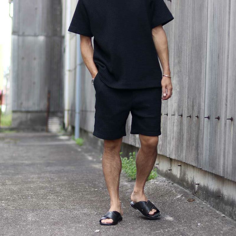 ラグジュアリーな休日ウェアを提案するSEAGREEN(シーグリーン)の、ブランドを代表するビッグワッフル素材のショートパンツ。