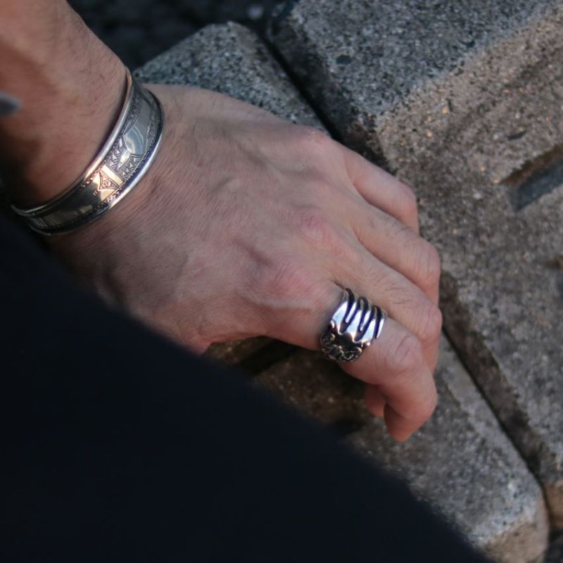 3本歯のアンティークフォークを2本組み合わせて作り上げたリング。