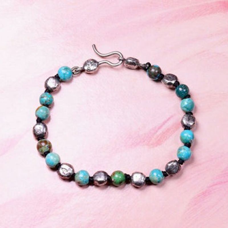 天然石とメタルビーズを手作業により繊細に組み上げたブレスレット。