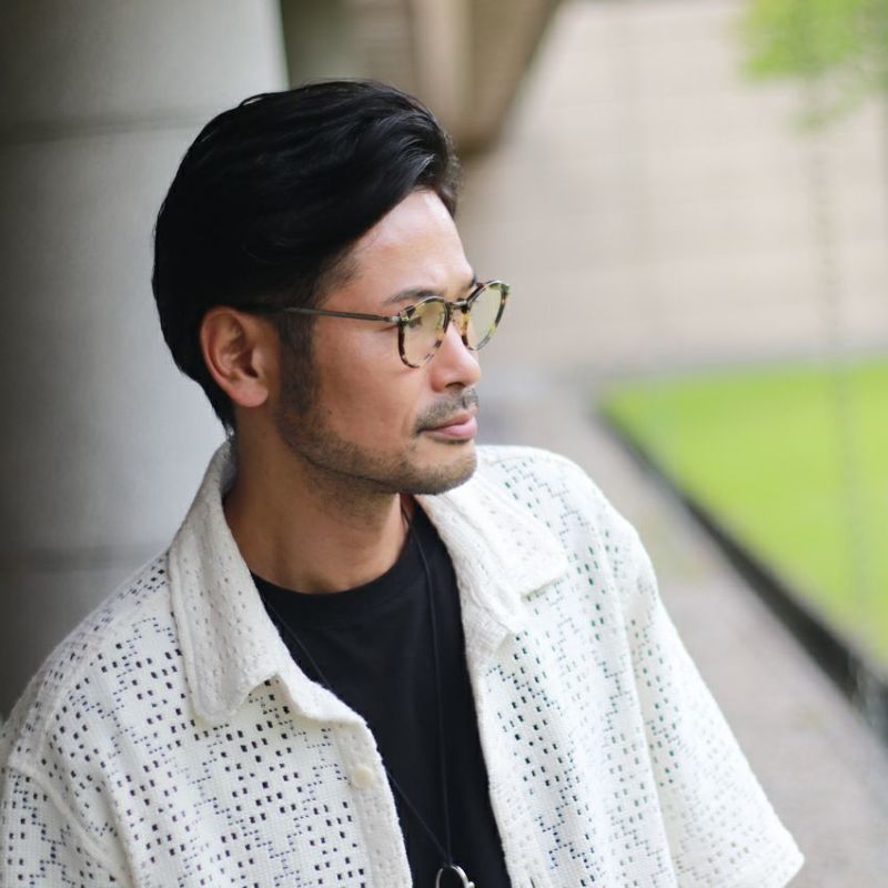 べっこうフレームの眼鏡はどんなコーディネートにも馴染みやすいのがポイント。