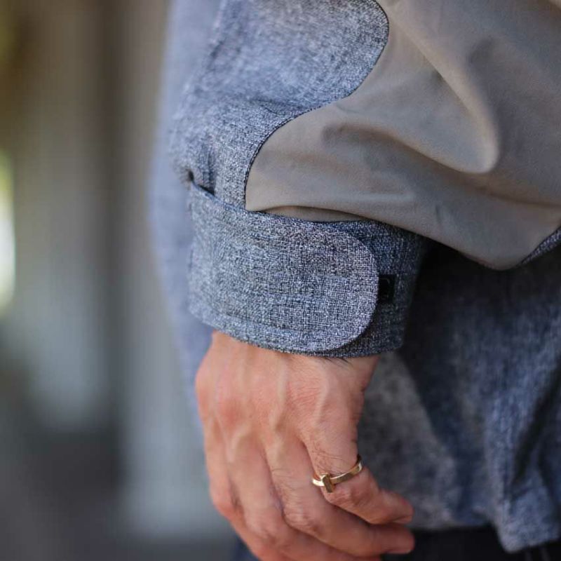 袖裏には異素材を組み合わせ、デザインにアクセントを加えつつ、腕通りの良さにも配慮。裏地には防風性に優れた機能素材を採用し、冷たい風をしっかりとブロックしてくれるため、春や秋はもちろん、肌寒い日にも安心して着用いただけます。
