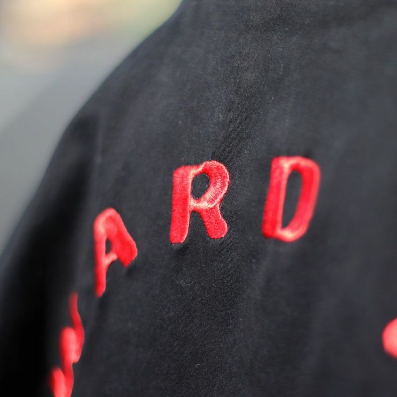 両袖にはそれぞれ"By Street" "By Trail"の文字光沢のある赤文字刺繍で施しています。