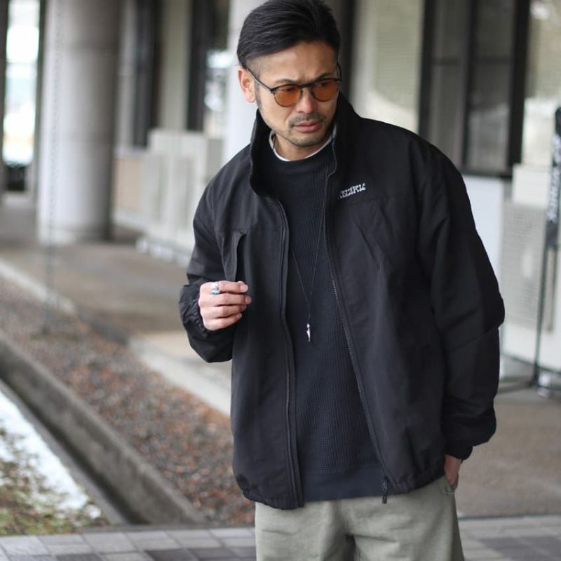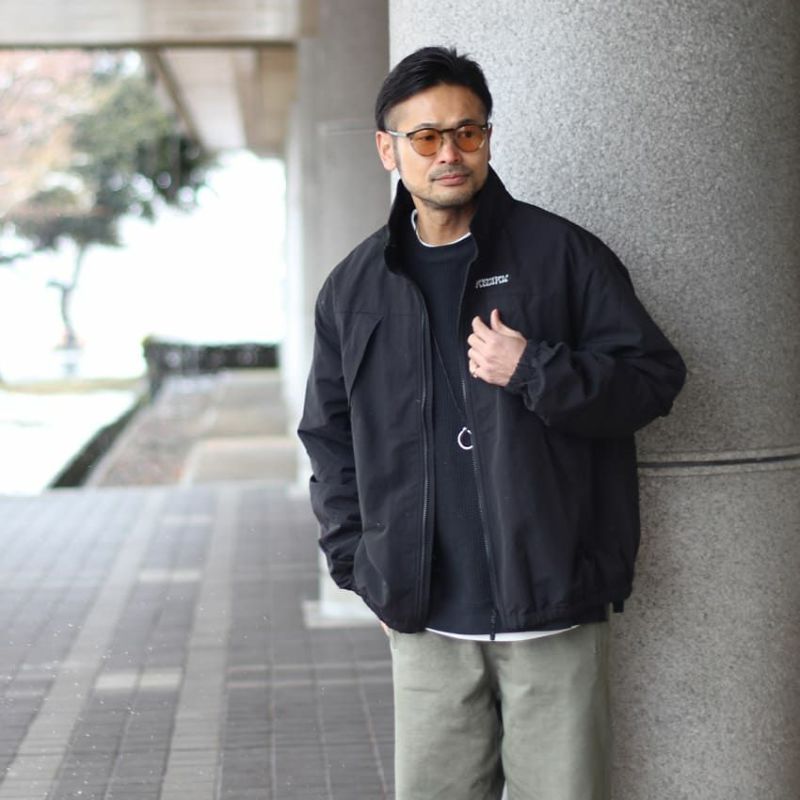 独特のシワ感と軽さのあるナイロン生地を使用したスタンドネックブルゾン。