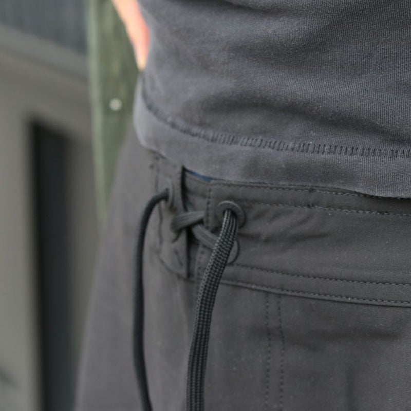 4つの穴に通されたドローコードでウエストのフィット感を調節可能。