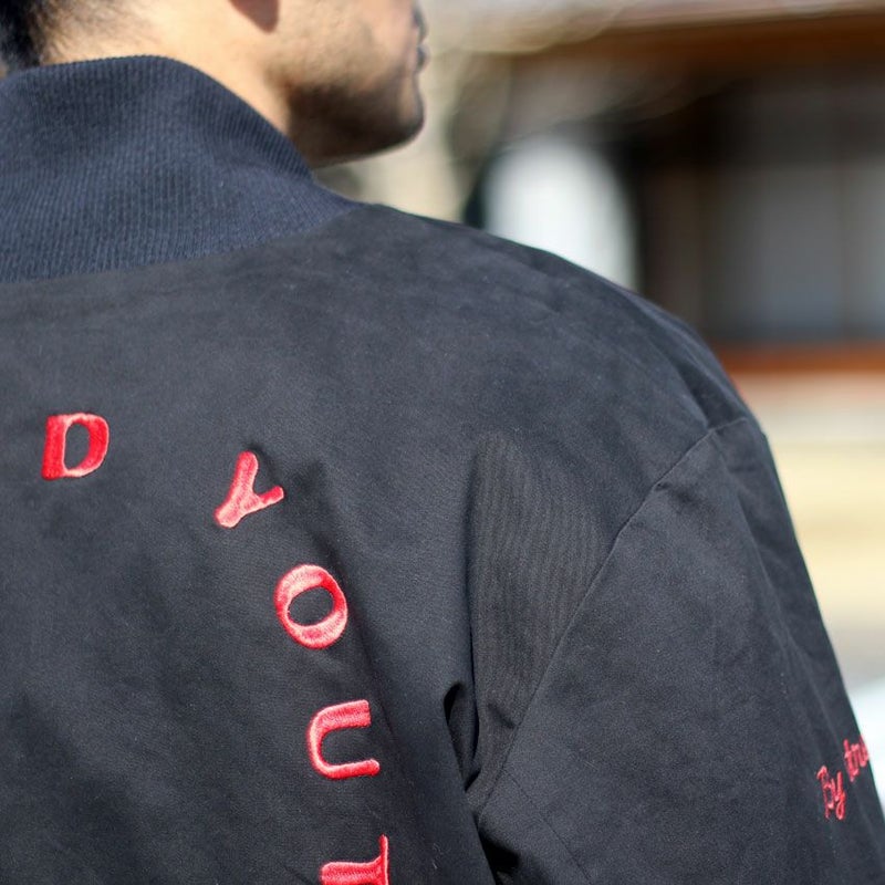 両袖にはそれぞれ"By Street" "By Trail"の文字光沢のある赤文字刺繍で施しています。