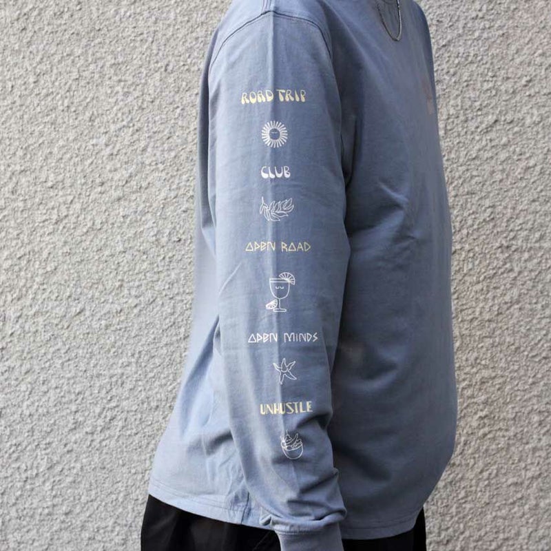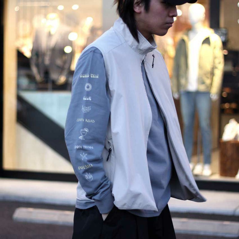 左胸のROARKのロゴの下には"UNHUSTLE"頑張りすぎないことも大切ですと言うメッセージがプリントされています。