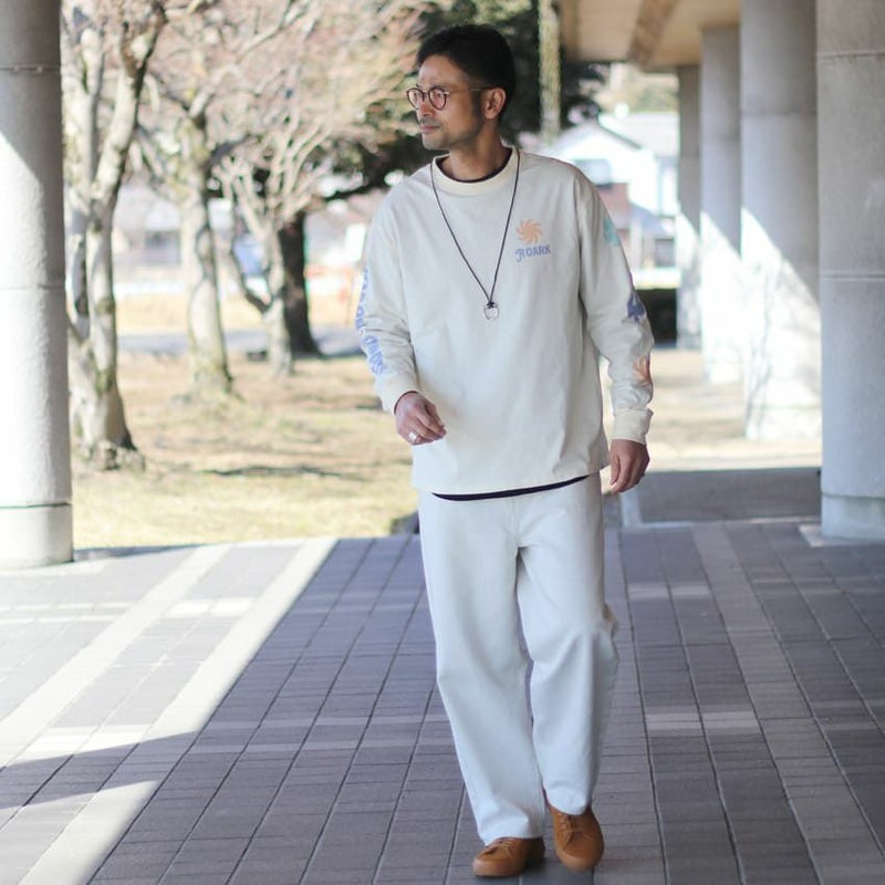 ナチュラルな色合いで、プリントTシャツでも着用しやすいのが嬉しいポイントです。