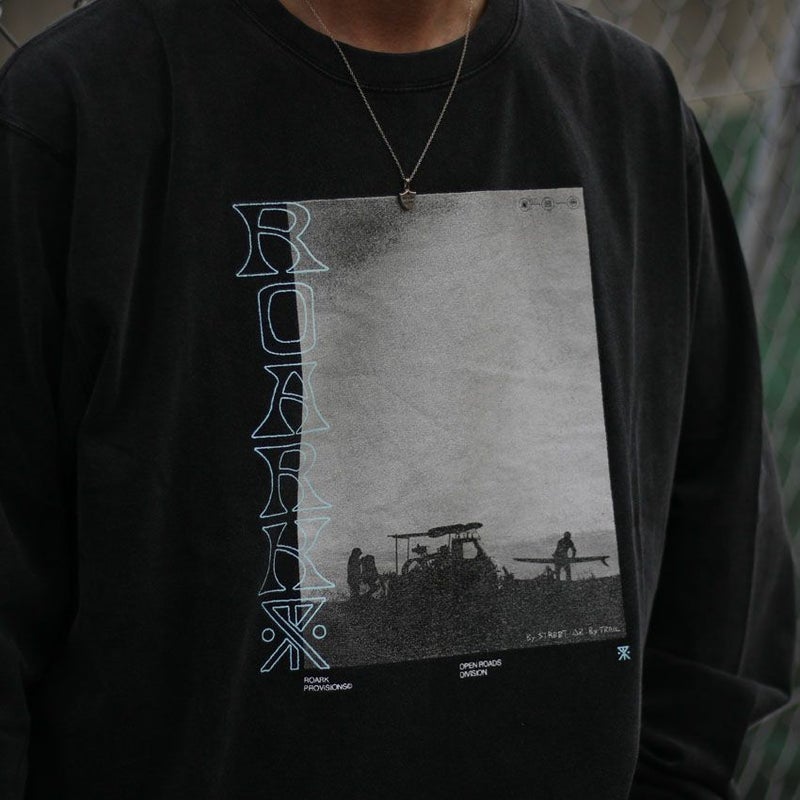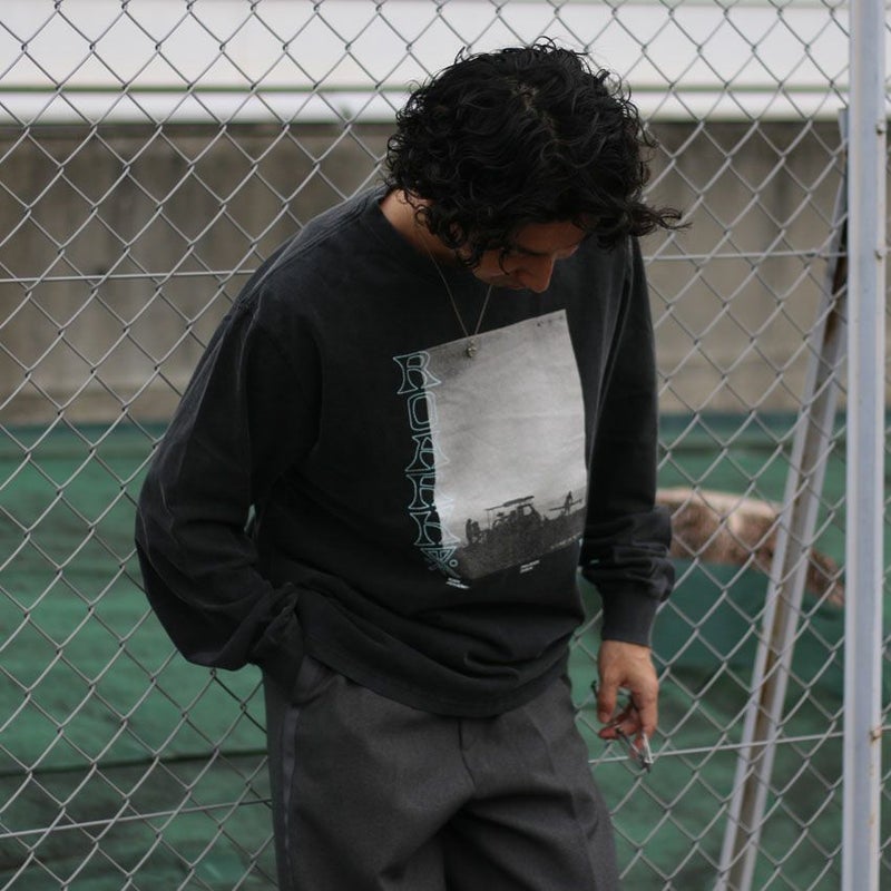 旅で撮影したし写真をモチーフに、モノトーンで表現したアート性の高い長袖Tシャツ。