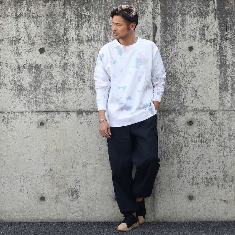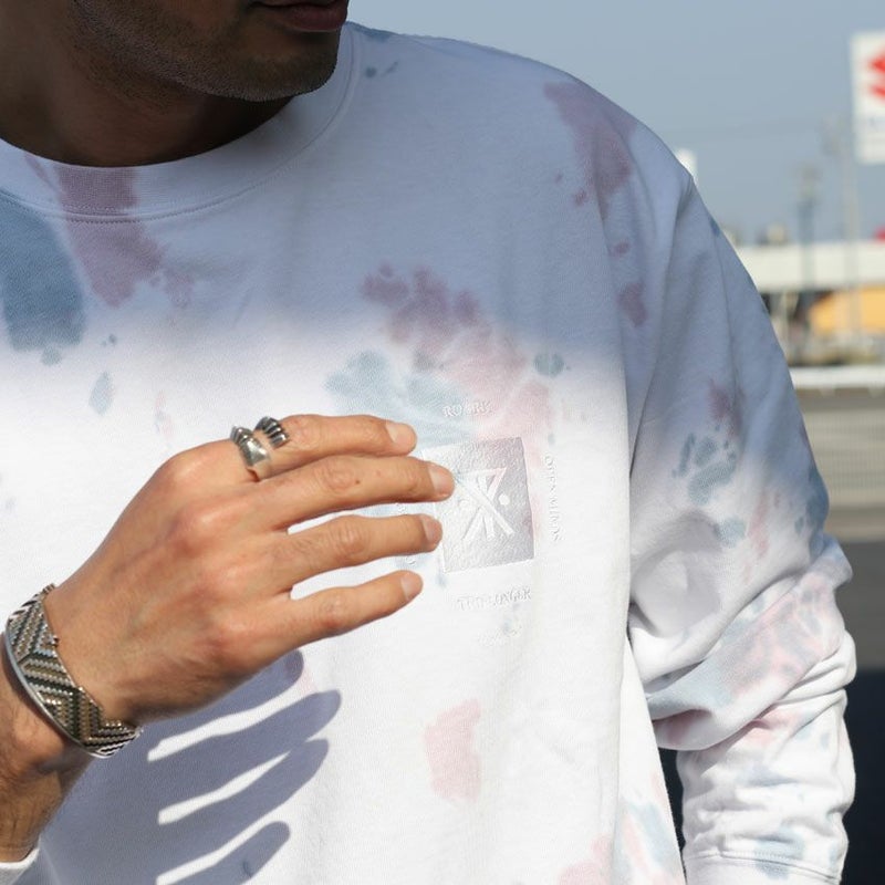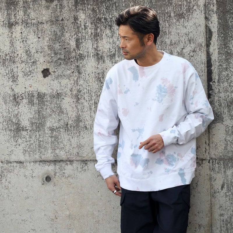 ペンキが飛んだようなタイダイ染めが珍しく、他と被らない一着になっています。