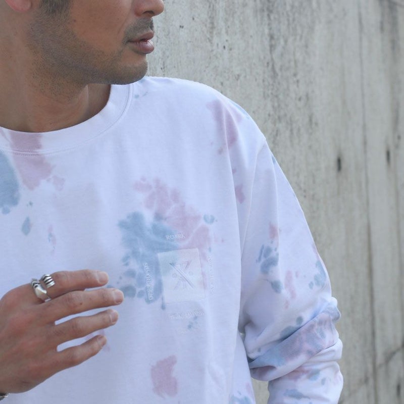 胸にSAFE CAMPロゴを刺繍したタイダイ柄のカットソー。