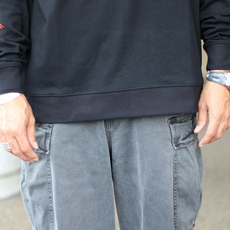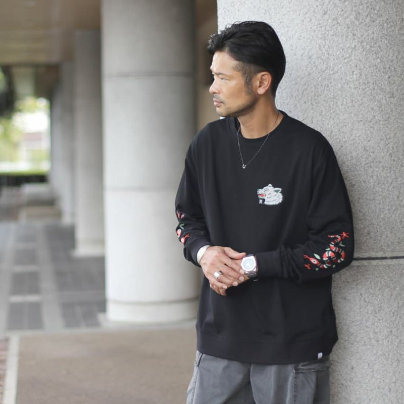 立体感のある刺繍は高級感があり、大人の男性が着用しやすいアイテムとなっています。 ボトムス問わず合わせやすい程よいオーバーシルエット。