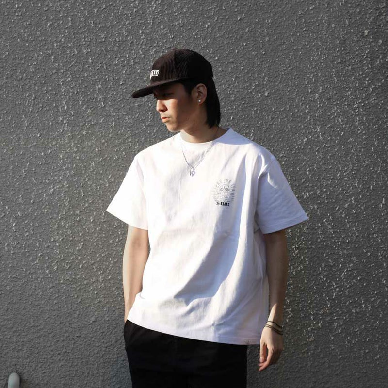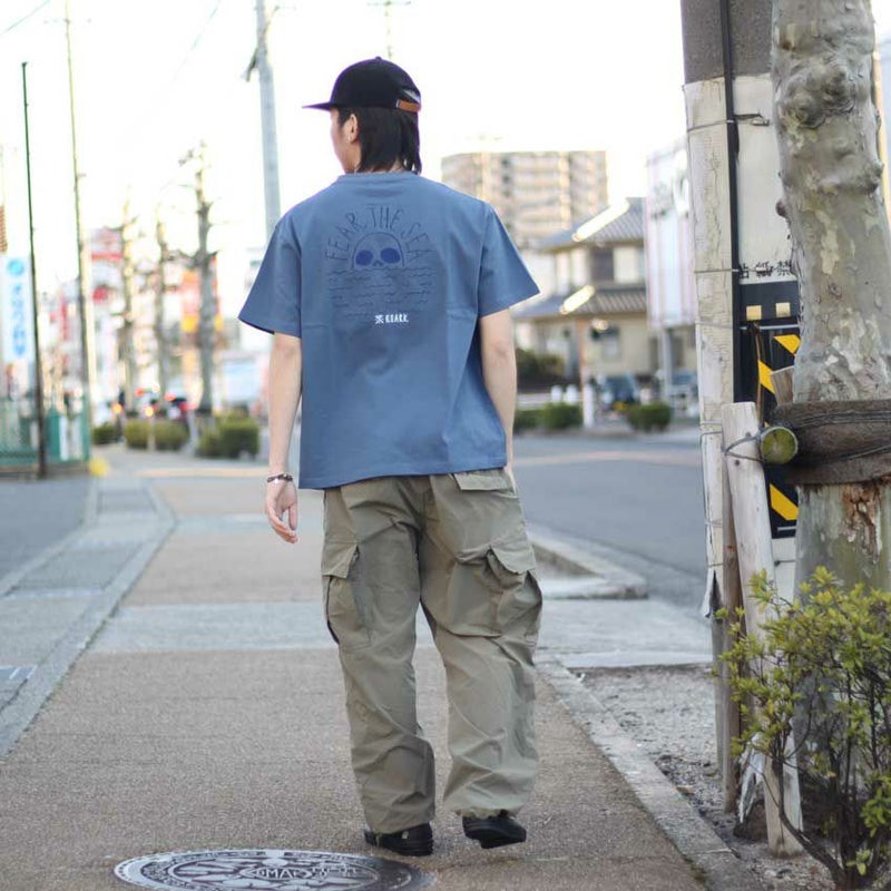 海に浮かぶスカルモチーフの太陽をデザインにして古き良きアメカジを感じさせる懐かしいテイストを今っぽく落とし込みトレンドのビンテージやワークな雰囲気を漂わせています。