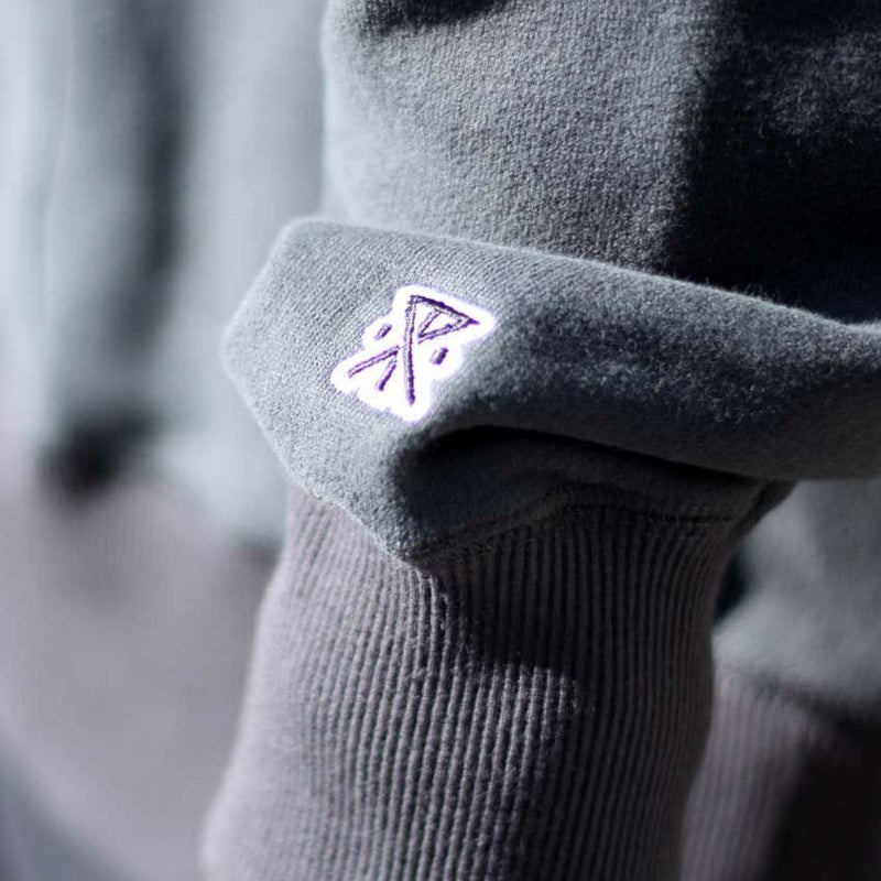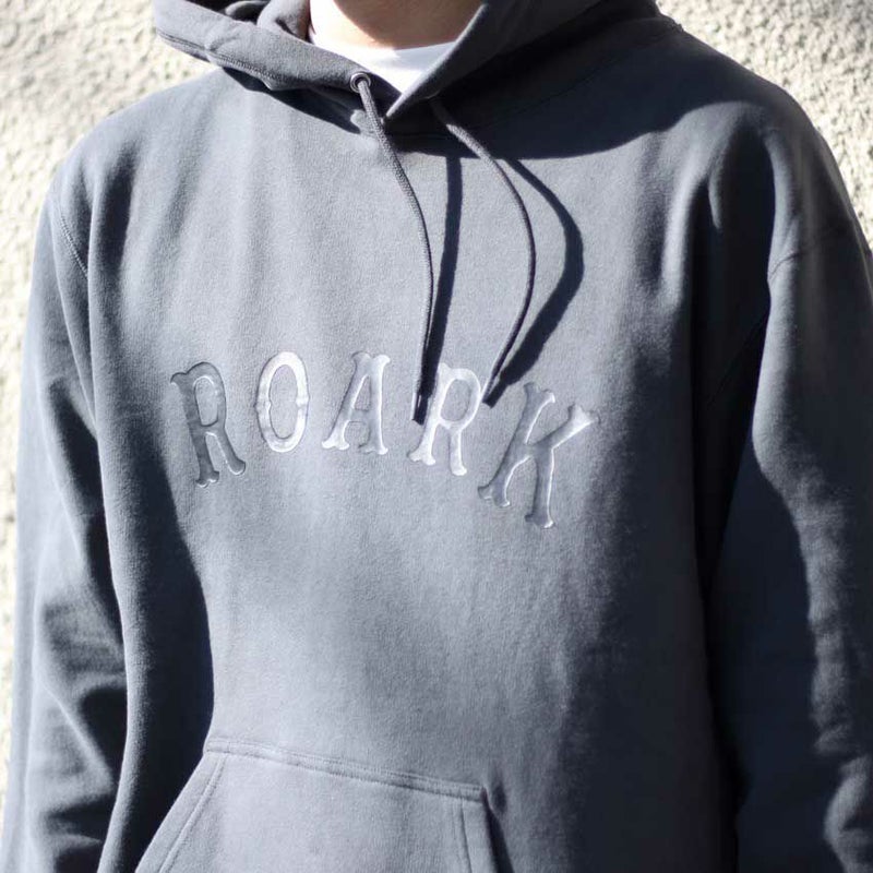 ROARKのロゴは中世の書体で表現し、大胆にプリント。袖にはセーフキャンプを示すアイコンが施してあります。