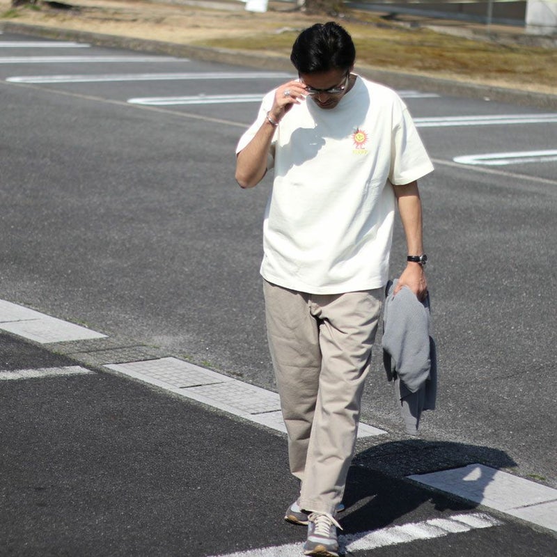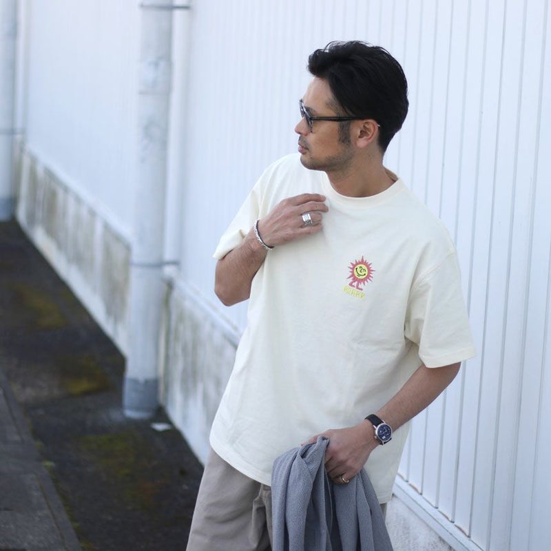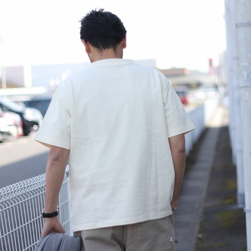 サイズ選びに関しては、普段着用されるサイズを選んでいただければ、少し方が落ち、身幅も程よくゆとりのあるシルエットになってます。