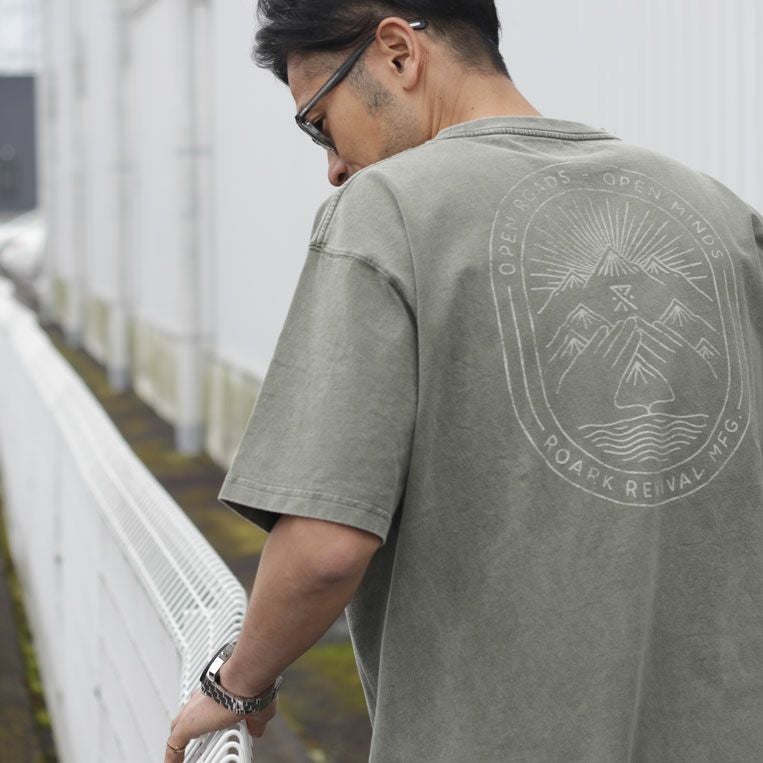 前身頃は、シンプルなデザインですが、背面にはオリジナルのグラフィックとロゴがあしらわれており、一枚でもお洒落見せが叶います。