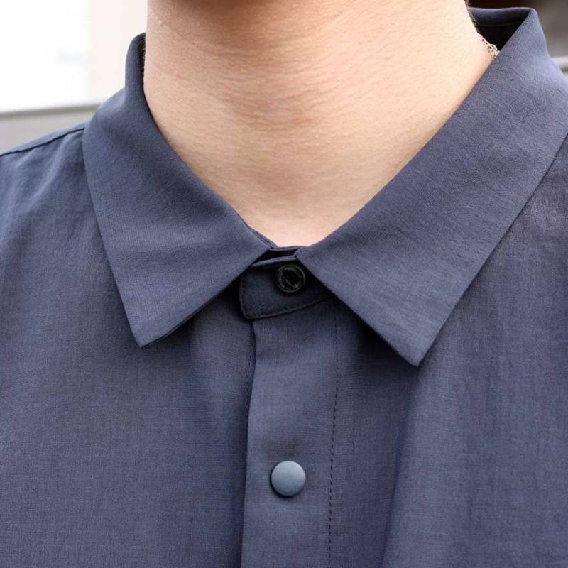 コーチジャケットのような仕立ては、シャツでも立体的なシルエットに魅せてくれます。