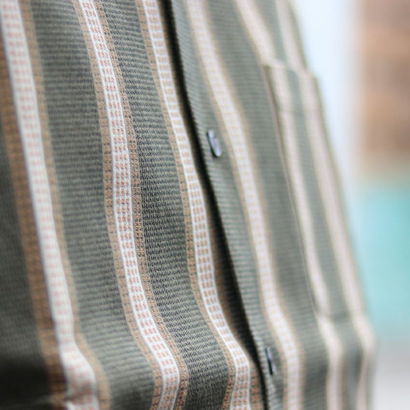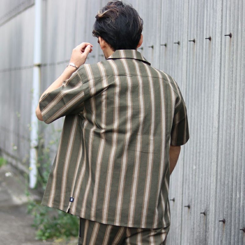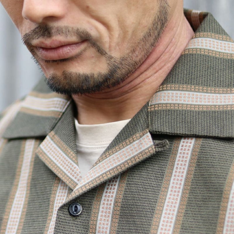夏らしいバーチカルストライプが特徴の半袖開襟シャツ。