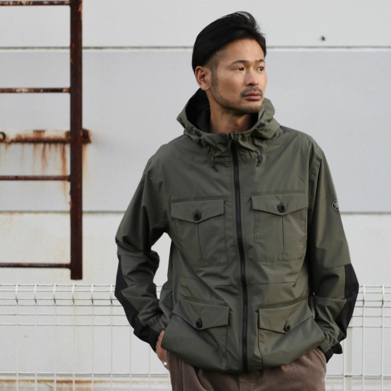 フロントに施された4つのアウトポケットがアクセントになったアウトドアテイストな1着。