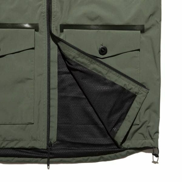 フード、ボディーの裏地にはメッシュ素材を使用しているため通気性が高く、アゴまでしっかり覆うことのできる防水仕様のアウトドアジャケットです。