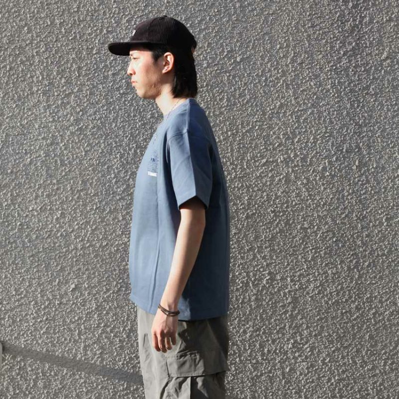 カーゴパンツやデニムなど、あえて王道の合わせ方でも十二分にカッコいいTシャツです。