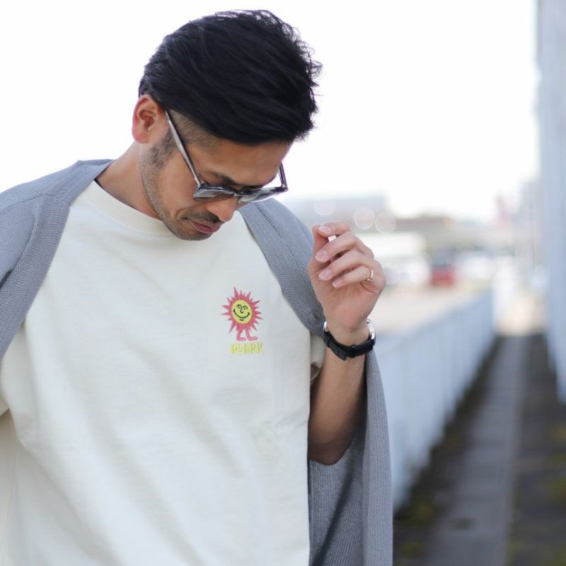 サイズ選びに関しては、普段着用されるサイズを選んでいただければ、少し方が落ち、身幅も程よくゆとりのあるシルエットになってます。