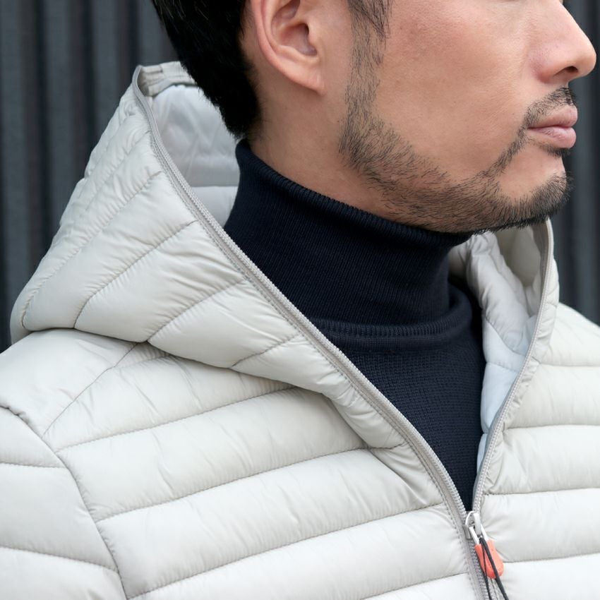 世界中で採取され続けている羽毛・ダック達を守りたいという信念のもと、「プラムテック」という人工ダウンを開発。天然のダウンより温かく、自宅洗濯も可能。