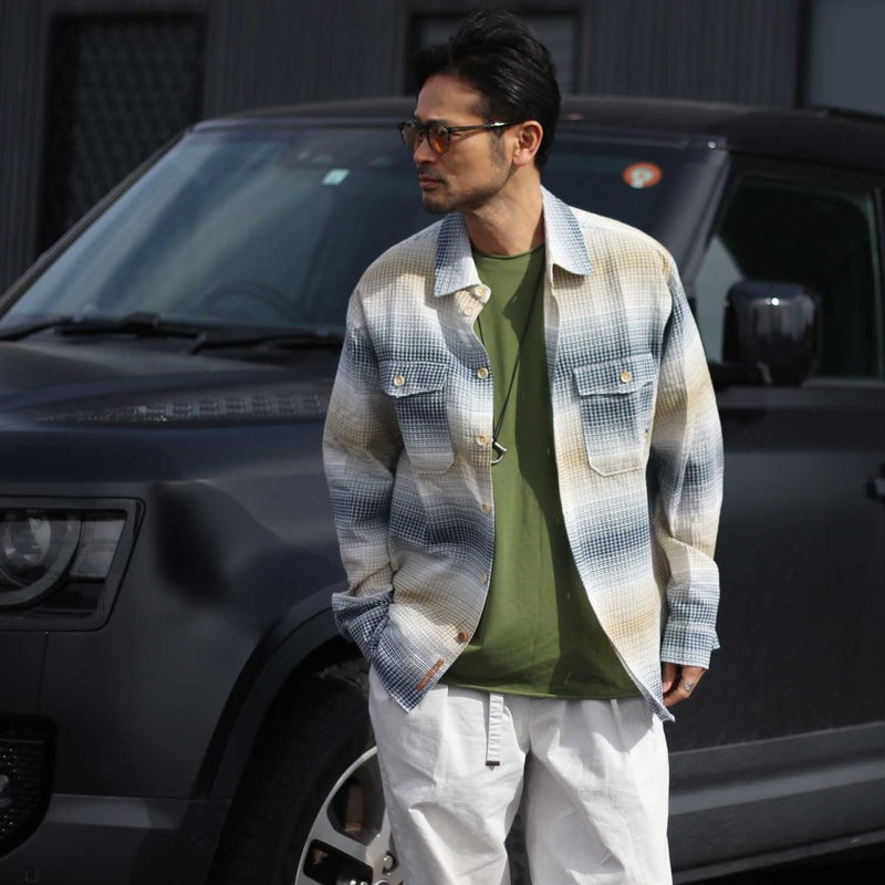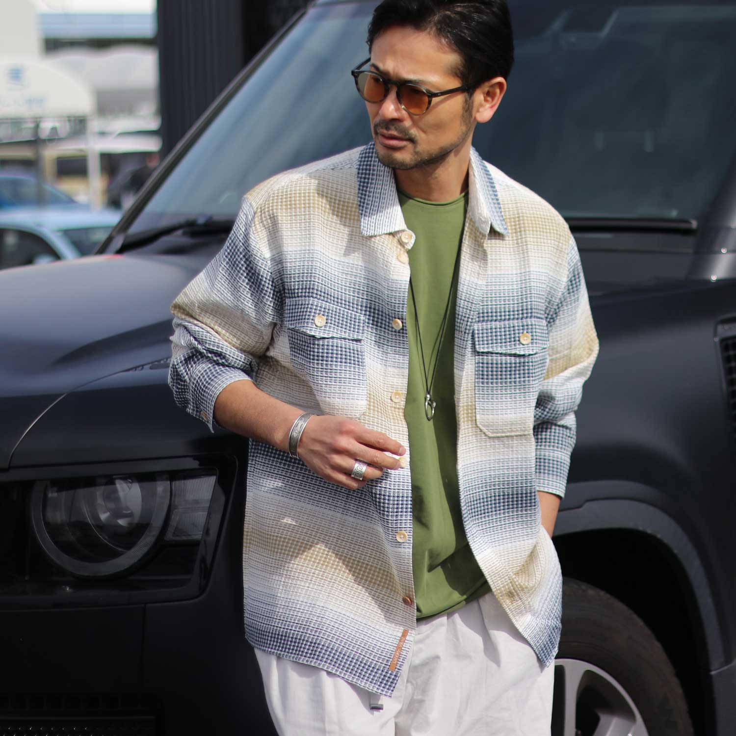 一枚で主役に。Tシャツの上に羽織って軽アウターに。