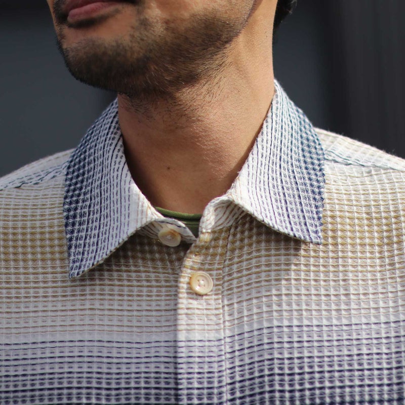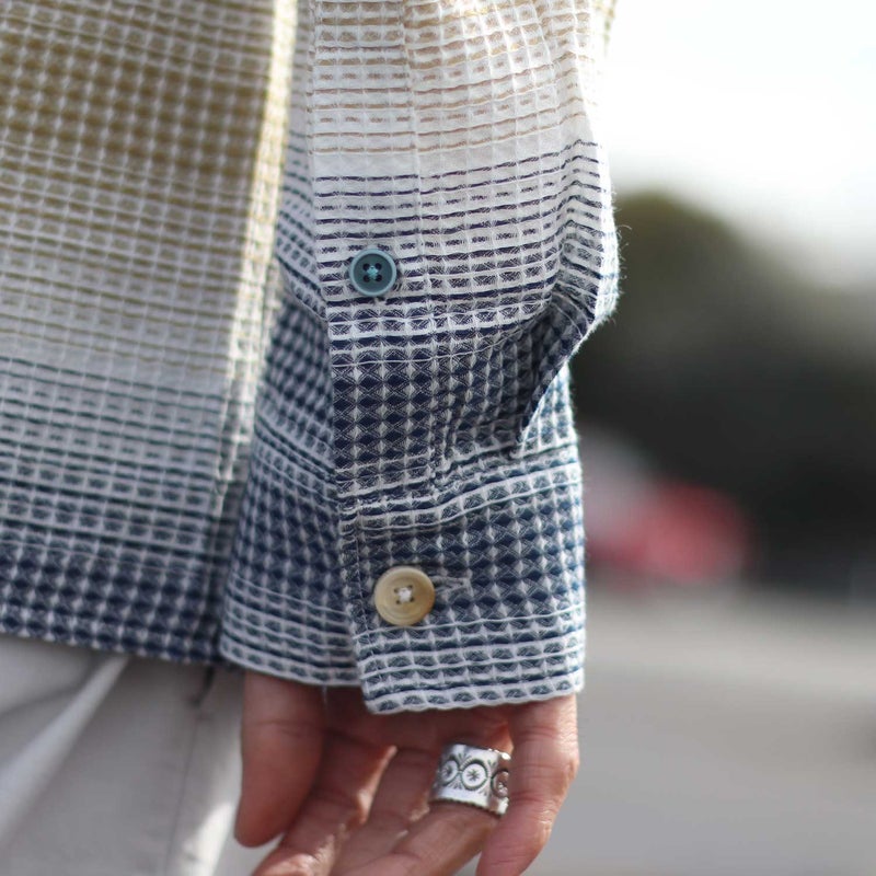 グラデーション配色が目を惹く、大人のためのワークシャツ。