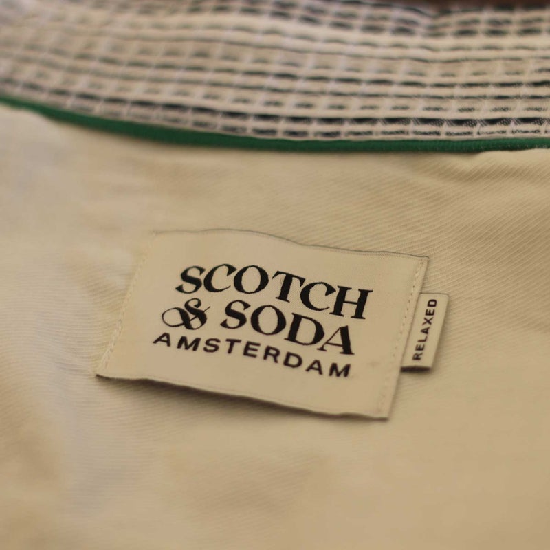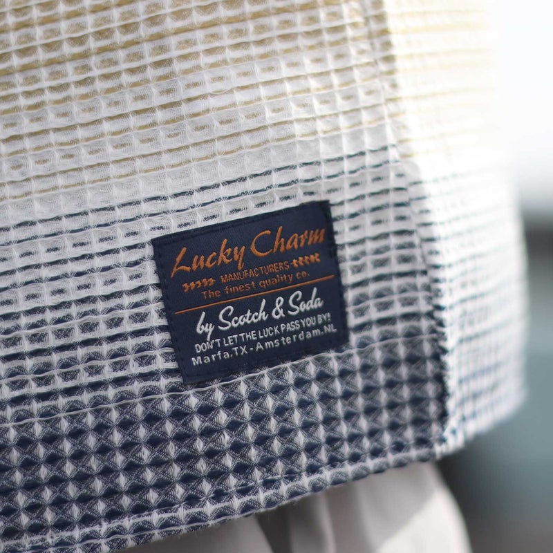スコッチのアイコン「XXX」刺繍と、マーブルベージュのボタンがさりげないアクセントに。