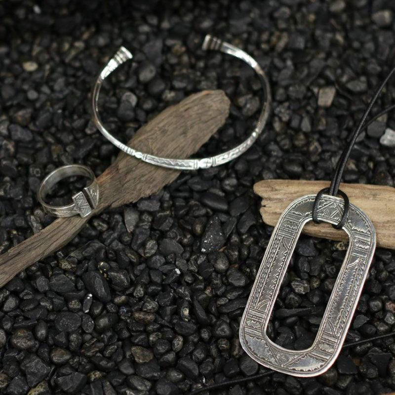 Adawat'n Tuareg/アダワット トゥアレグらしい丸みのあるシルエットと全体に彫られた文様が美しく存在感のあるネックレスになります。