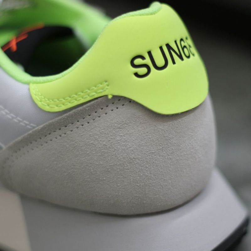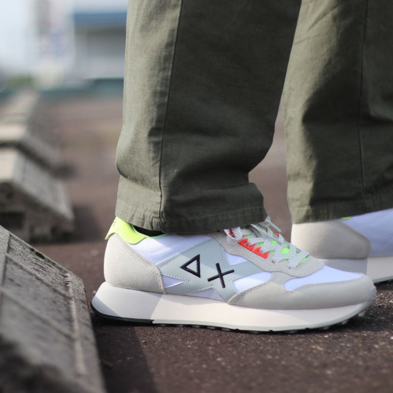 また、部分的にあしらわれた蛍光色の切り替えが目を惹く一足に仕上がっています。