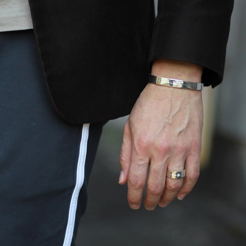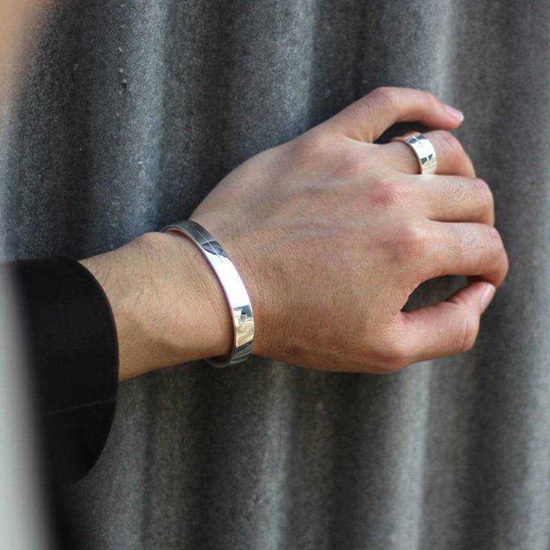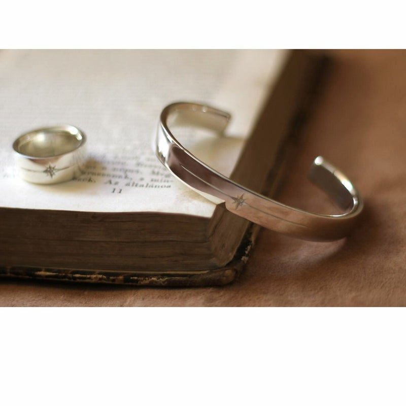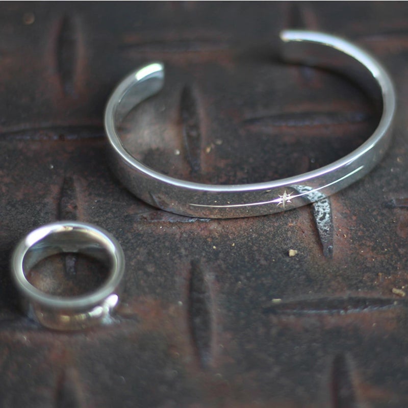 トップにダイヤモンドを彫り止めしたシルバー平打ちバングル 幅8.5mm 厚み2mmという絶妙なボリューム感の平打ちシルバーバングル