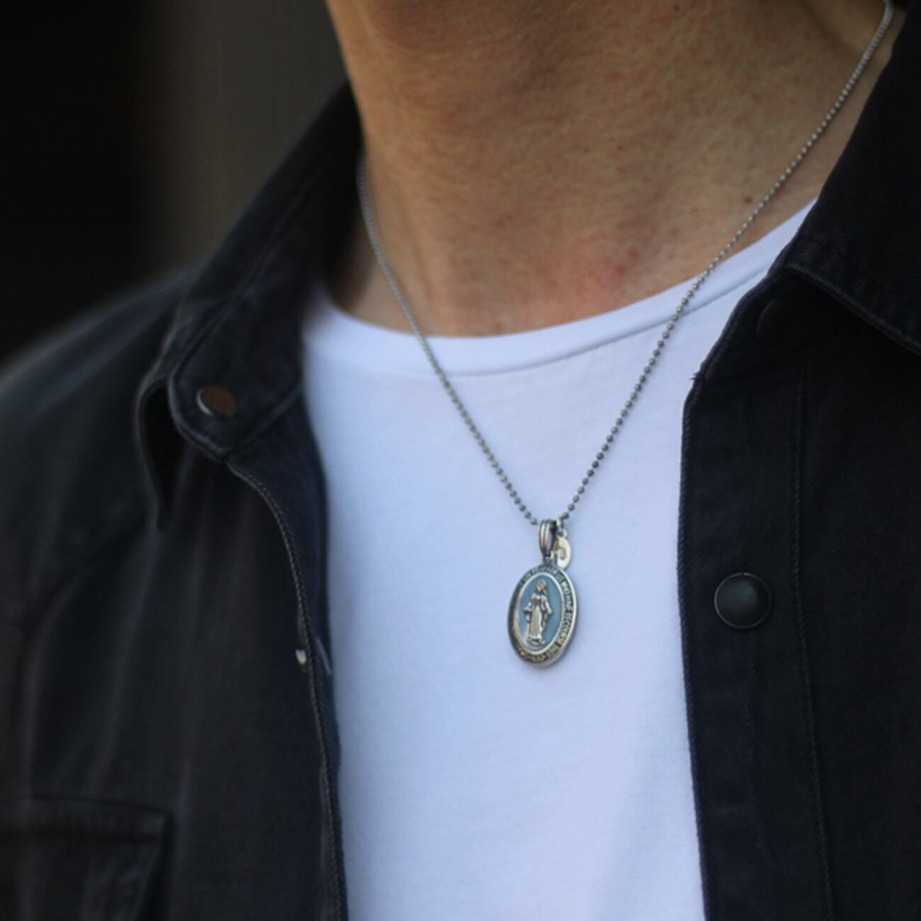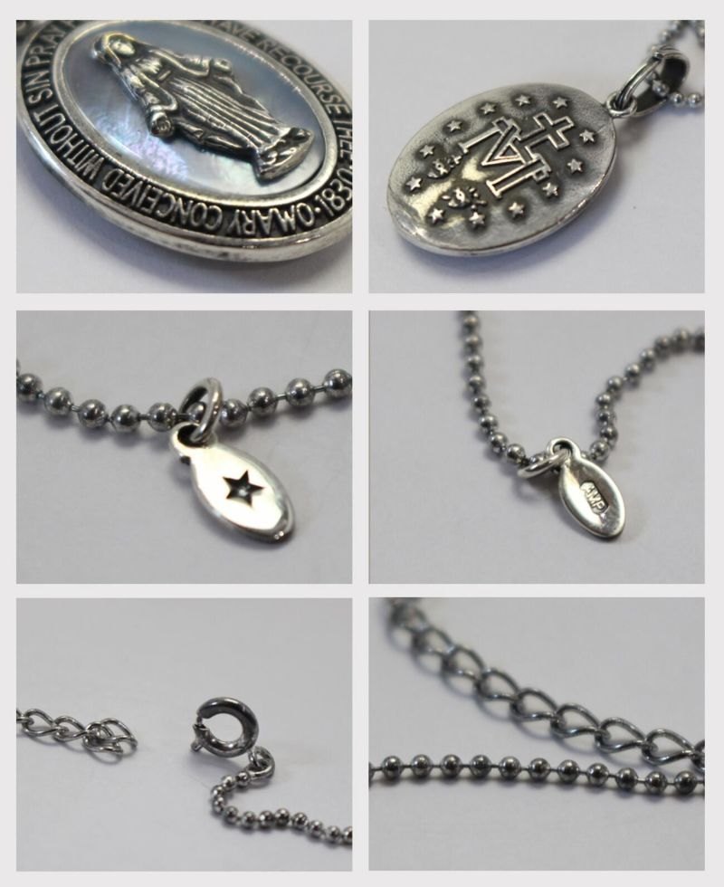 シルバーコーティングされたメイントップに 白蝶貝を削り出しその上にマリアをセッティングしたネックレス