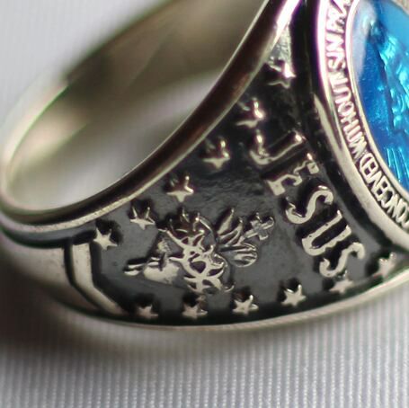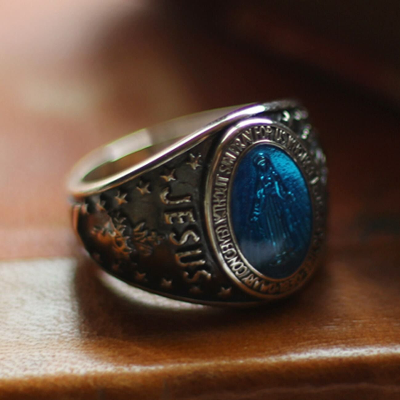 トップにはブルーのエポキシを施し、サイドにはマリアとキリストの聖心と12個のスターをデザイン