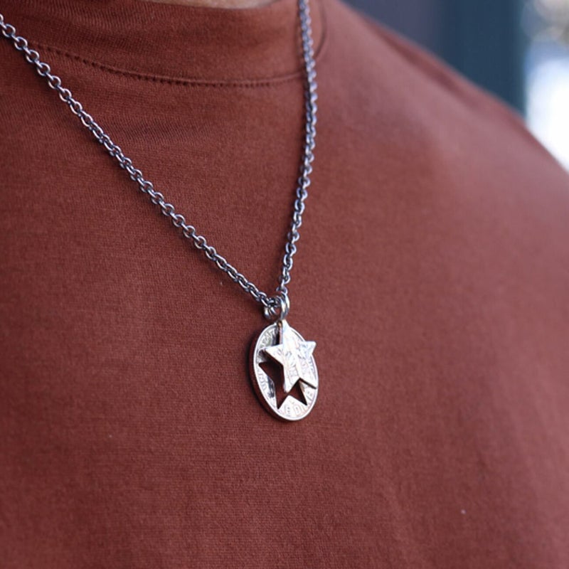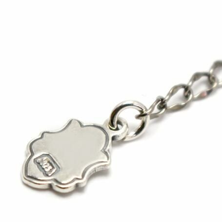 チタン製チェーンの先に施されたクレストチャームはシルバーによって仕上げられています