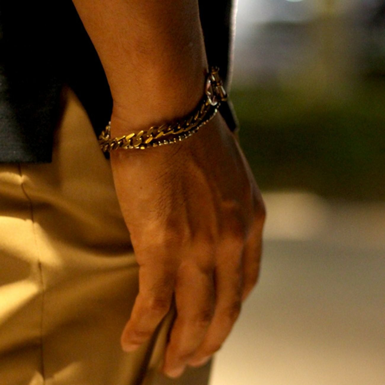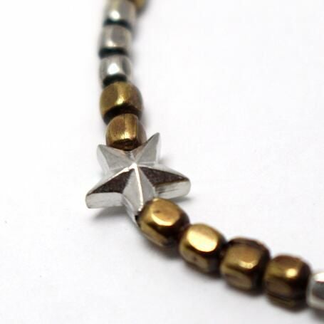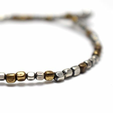 小ぶりな真鍮製2色ビーズをランダムに連ねたブレスレット