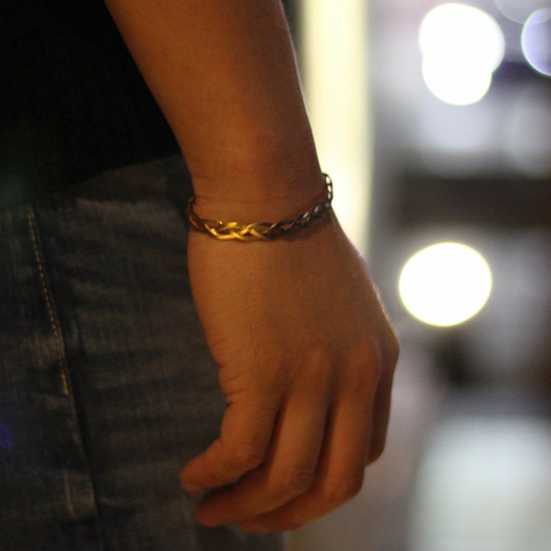2.0mm平打ち銀を手作業で編み込んだグラデーションバングル