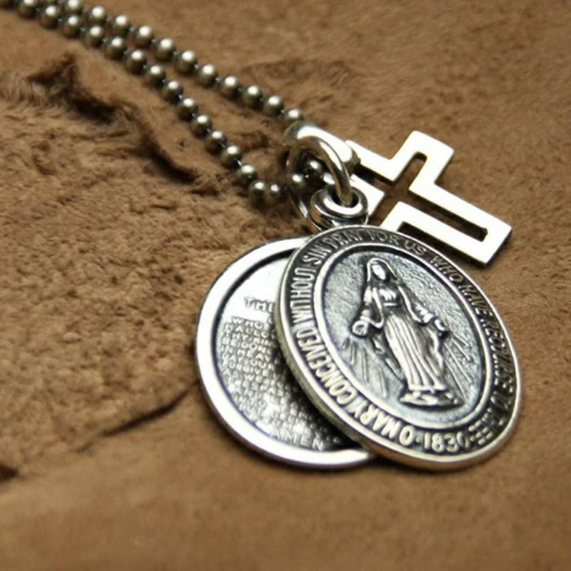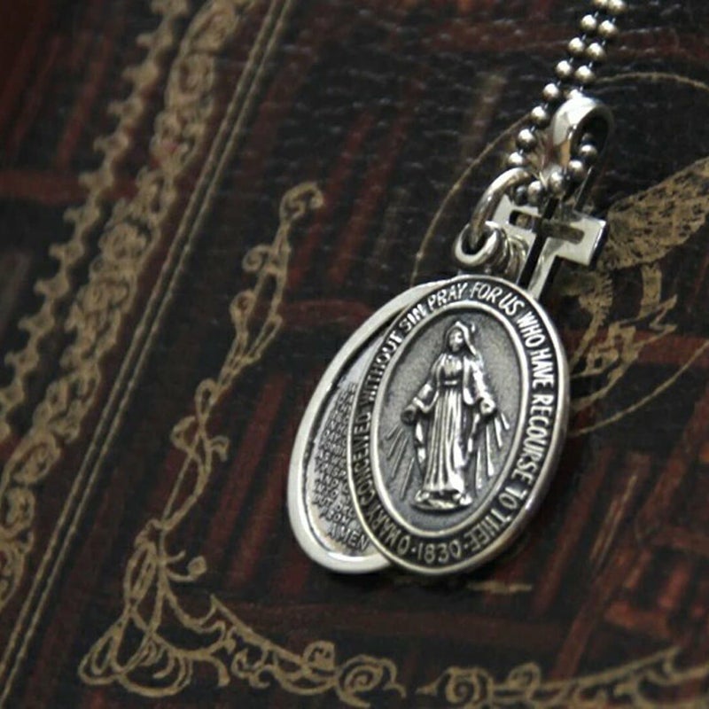マリア側の裏面には十字架とM(マリア)の文字に愛のシンボルであるマリア、キリストの二つの心臓と12の星が刻まれています