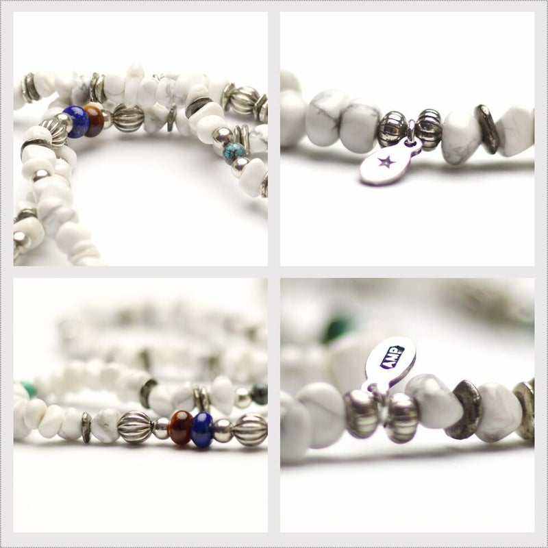 ハウライト、タイガーアイ、ラピスラズリー、ターコイズなど複数の天然石を使用しており遊び心を感じさせます